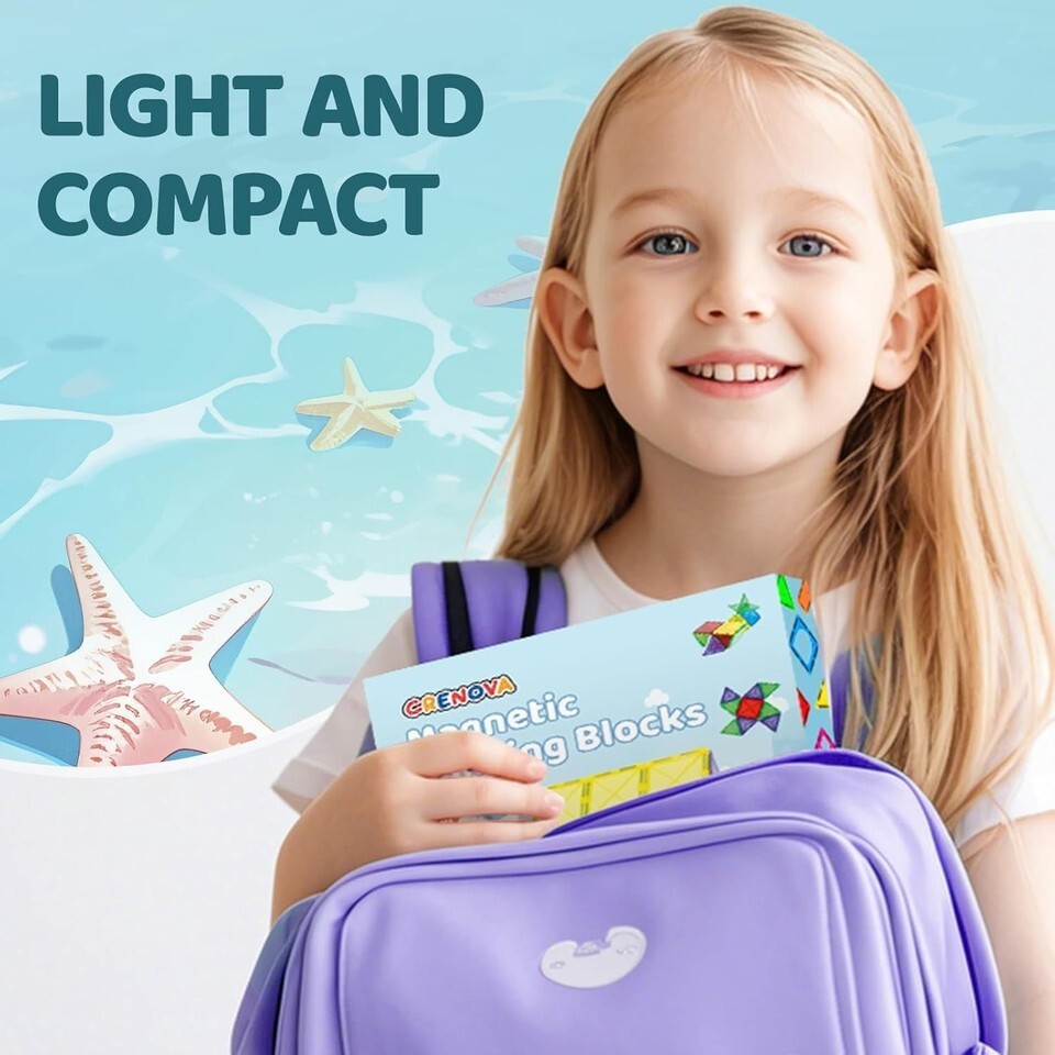 Crenova Magnetic Tiles Toddler Magnet Toys, Mini Magnetic Building Blocks for Kids Ages 3+ Travel Set, Educational Toy for Boys Girls Sensory Play Preschool Learning Classroom Must Haves