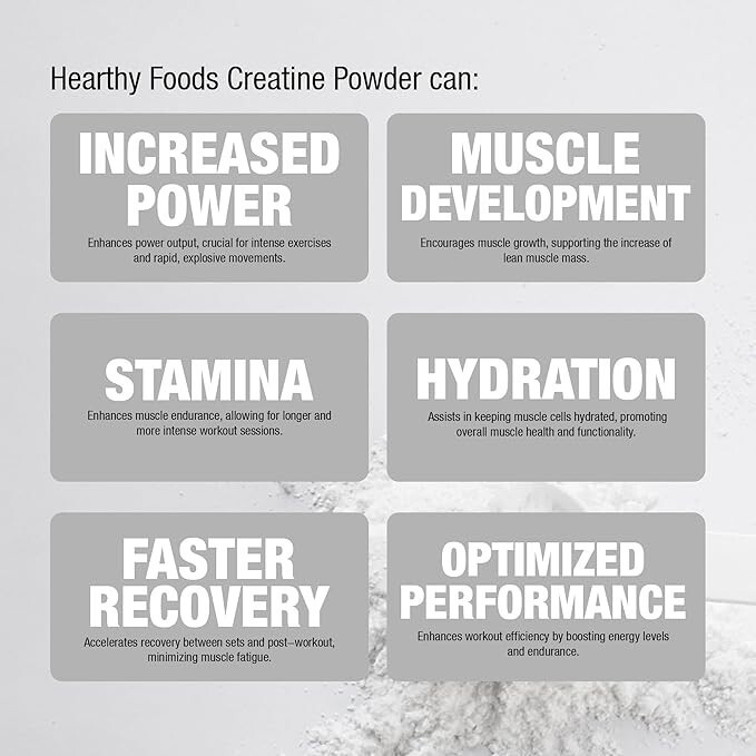 100% Pure Creatine Monohydrate for Women Monohydrate, 5g per Serving - Each scoop delivers a potent 5 grams of pure creatine monohydrate for men from Hearthy Foods, with no fillers, additives, or artificial ingredients for optimal muscle performance.