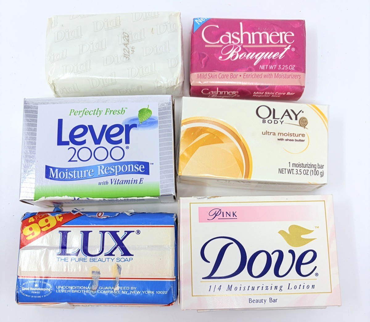 Lot of 6 New Old Stock Bar Soap Olay Ultra Moist Pink Dove Cashmere Bouquet Lux