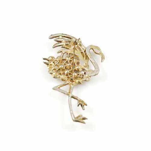 Vintage Brooch Large Colored Rhinestone Flamingo Paste 1930S