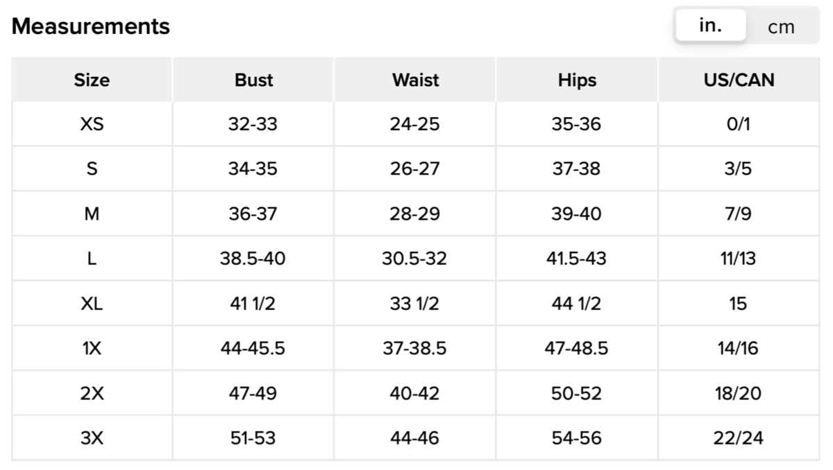 Runs true to size; great stretch and flattering fit.