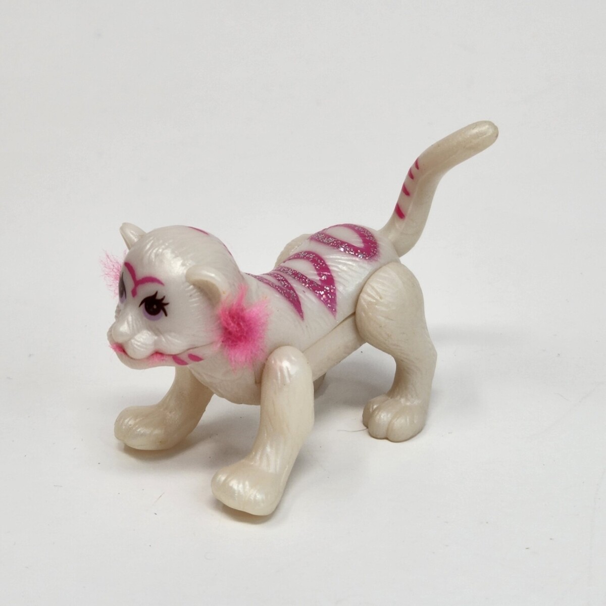 VINTAGE 1996 LITTLEST PET SHOP TONKA WHITE + PINK GLITTER TIGER HAPPY MEAL TOY
