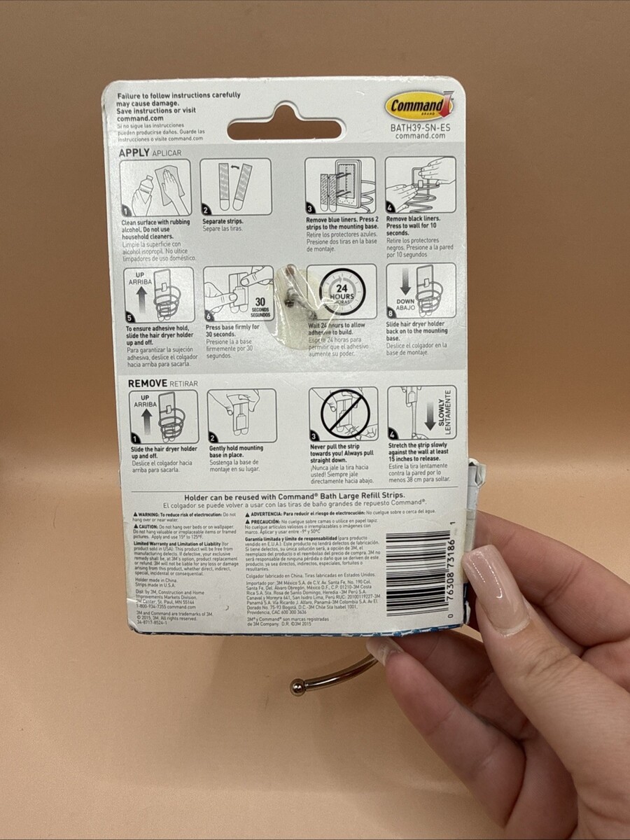 3M Command Hair Dryer Holder Satin Nickel Rust Resistant Holds 3 LB