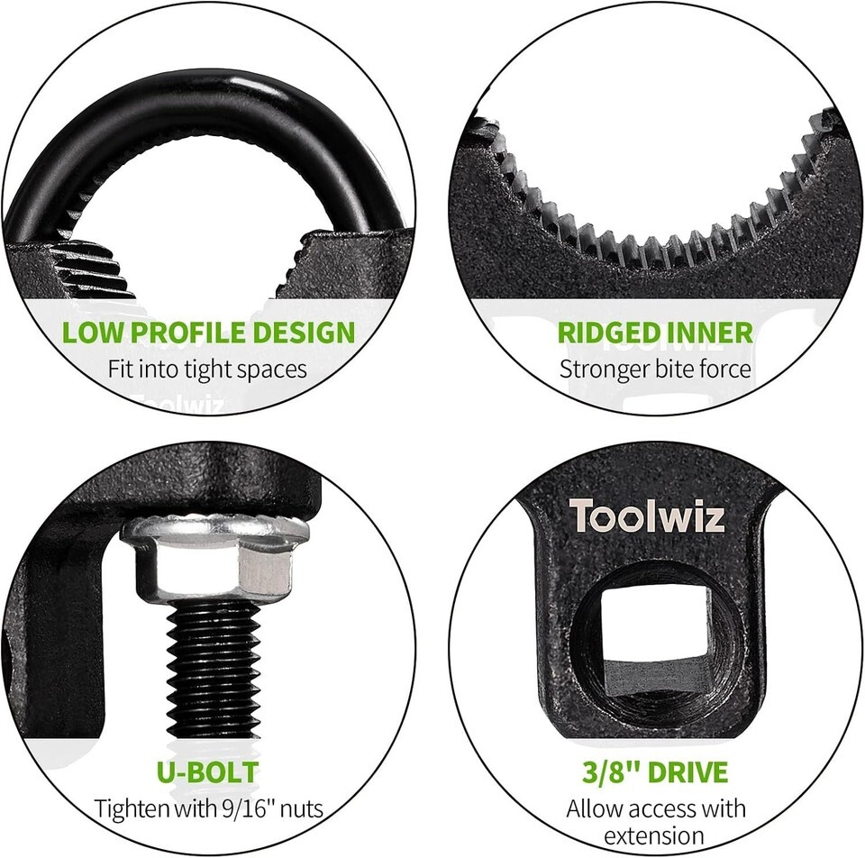 Easy to Use: Slide tool over the end and tighten collar to allow access with a 3/8? drive extension; adapters can be used for larger breaker bars/extensions