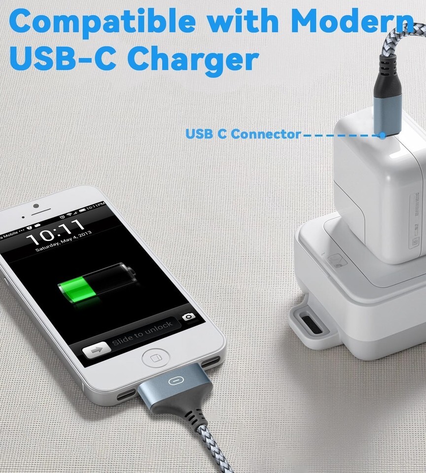 30 Pin to USB C Adapter Ipod Charger Nylon Braided Fast Charging Data Cord Next