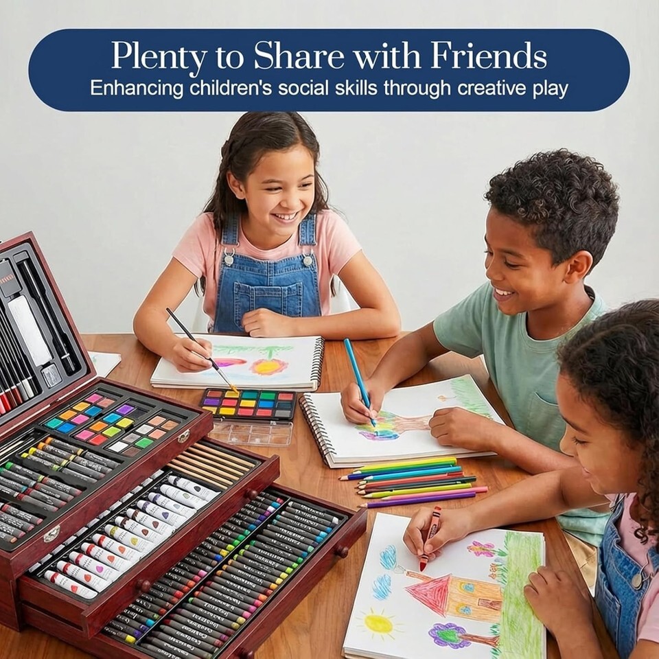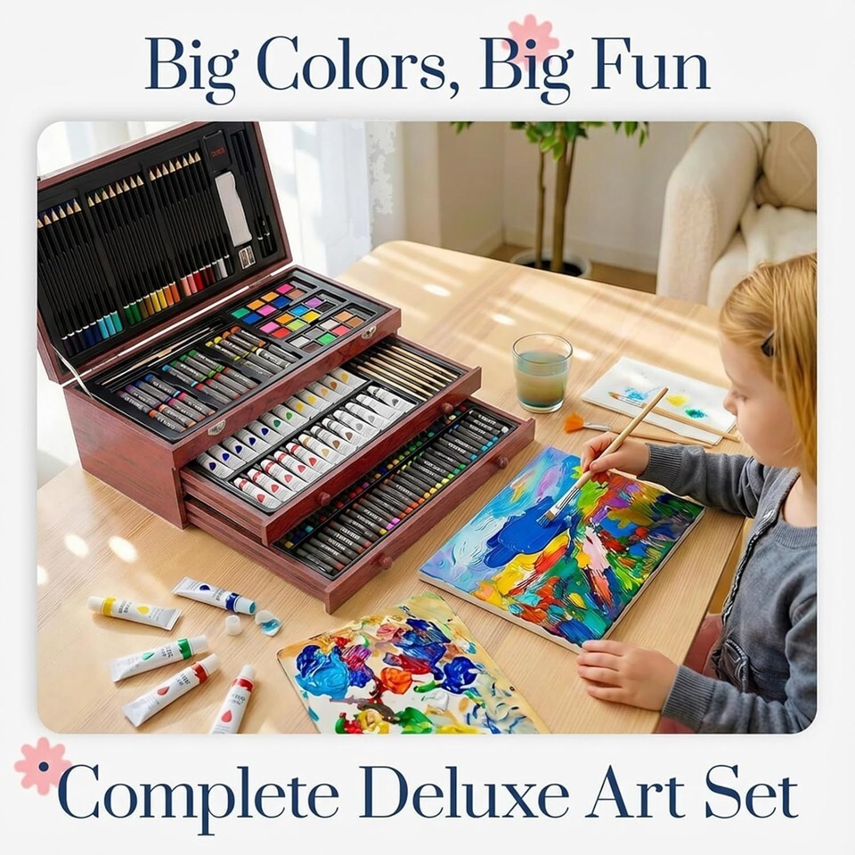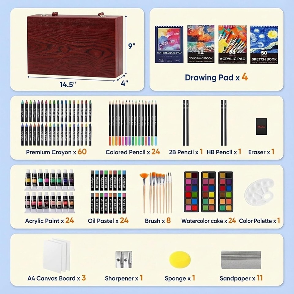 194 Piece Deluxe Art Set, Painting Drawing Art Supplies with 4 Drawing Pads, Acrylic Paints, Crayons, Colored Pencils Set in Wooden Case, Art Kit Gift Box for Kids, Teens, Adults, Artists, Beginners