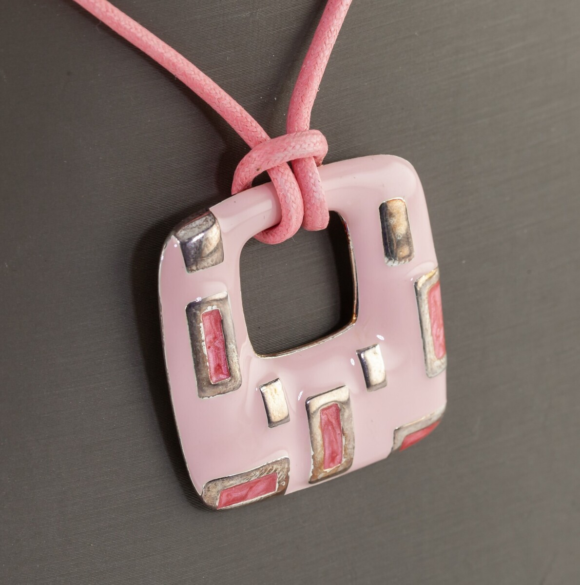 Gorgeous Pink Milor Italy Sterling Silver Enamel Pendant with 32" pink Cord