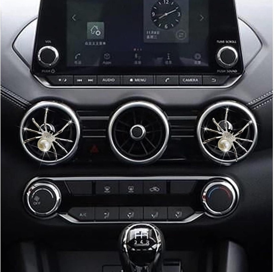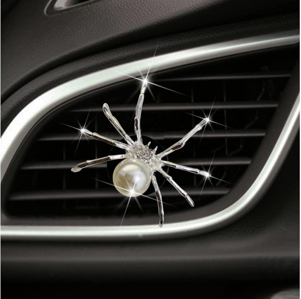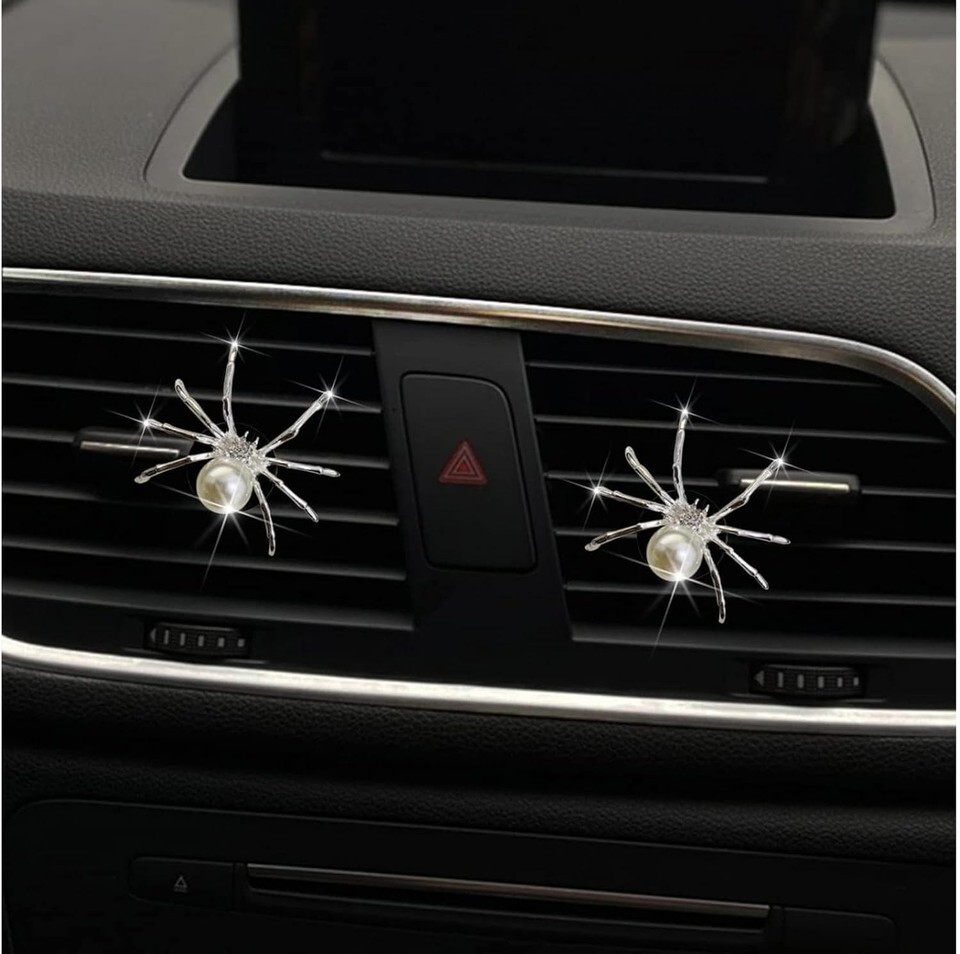 Stylish Car Decor: Add a touch of bling to your car's interior with these cute and lovely silver spider car air freshener vent clips.