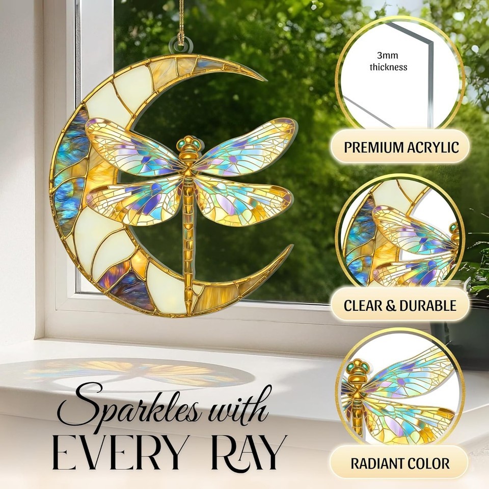 Dragonfly Moon Ornament – Gifts for Women, Hanging Suncatcher for...
