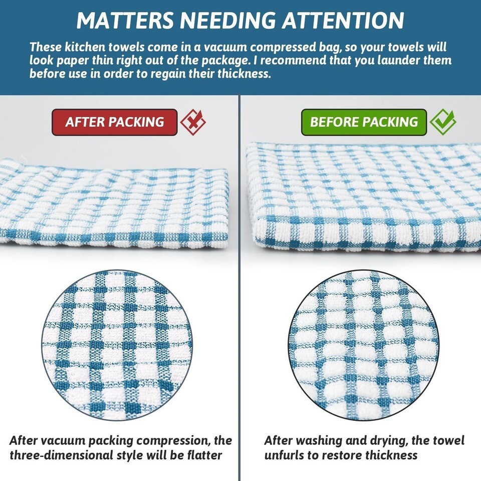 MULTIFUNCTIONAL - Our dish towels perfect thickness, Can be used as dish rag,cleaning cloth,kitchen towels,dish towels for drying dishes and cleaning kitchen jobs, It?s so easy to remove dust, dirt, stain, grease. They are helping you handle housework quickly and efficiently.