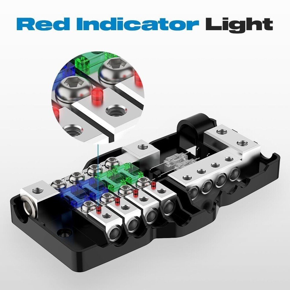 Enhanced Safety: MIDI (Mini-ANL) fuse distribution block contains 6 ANL fuses (2x30A, 2x60A, 2x80A) to ensure the protection of your circuits under different conditions .