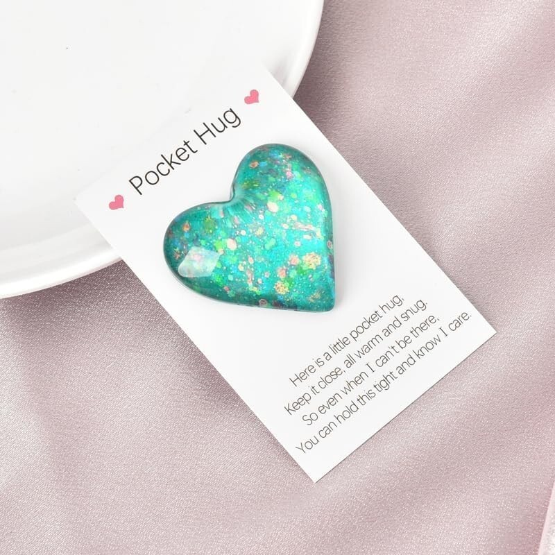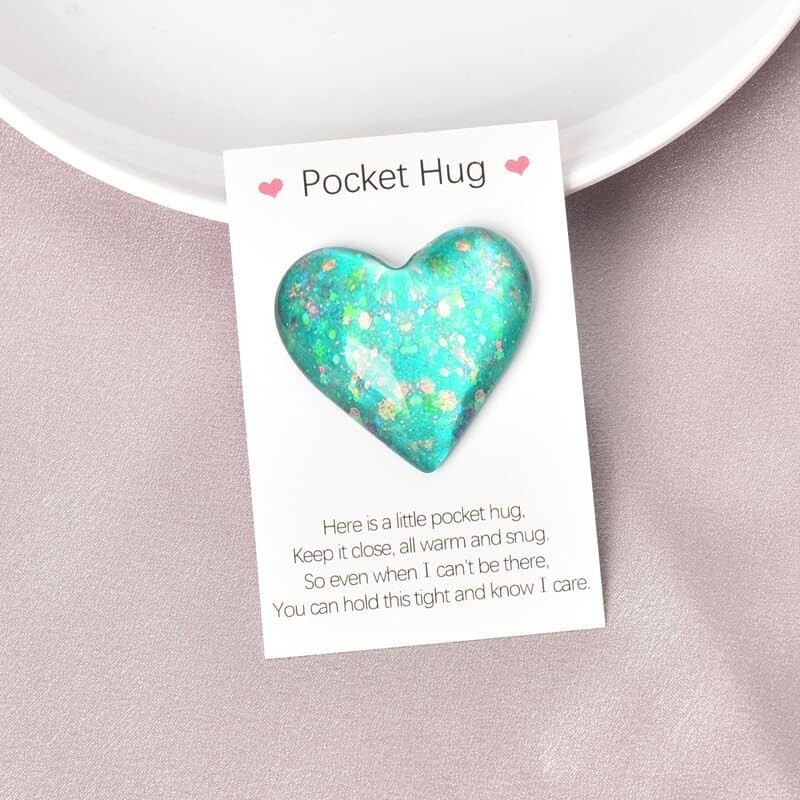 Pocket Hug Token Inspirational Gifts for Women Men - Glass Heart Charm Encoura