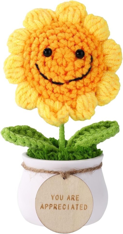 Product Size: The size of the crochet smile sunflower is about 13x5.5cm/5.1x2.2in. The compact size makes it easy to carry and put in a bag, and it will not take up too much space when placed on a desk.
