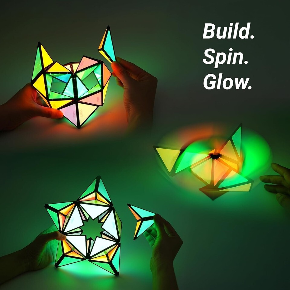 TOSY Magnet Pyramid Glow - 1 Cube Transforms into 1 Billion Shapes, 15 pcs (12 Puzzle pcs 3 Accessories), 243 Magnets, Glowing, Christmas Stocking Stuffers Gift for Kids, Creative Puzzle STEM Toy