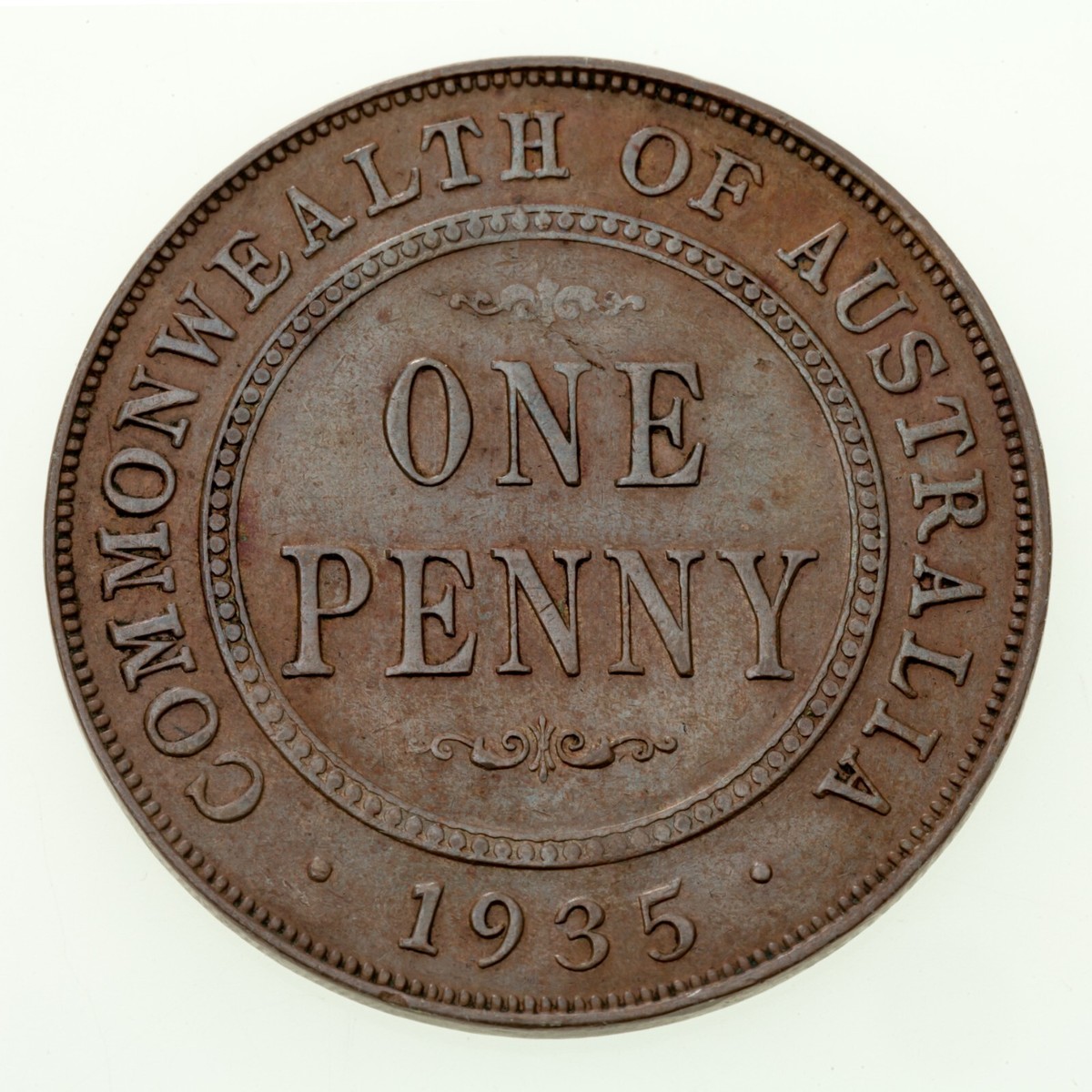 1935-M Australia Penny Coin, AU Condition KM# 23