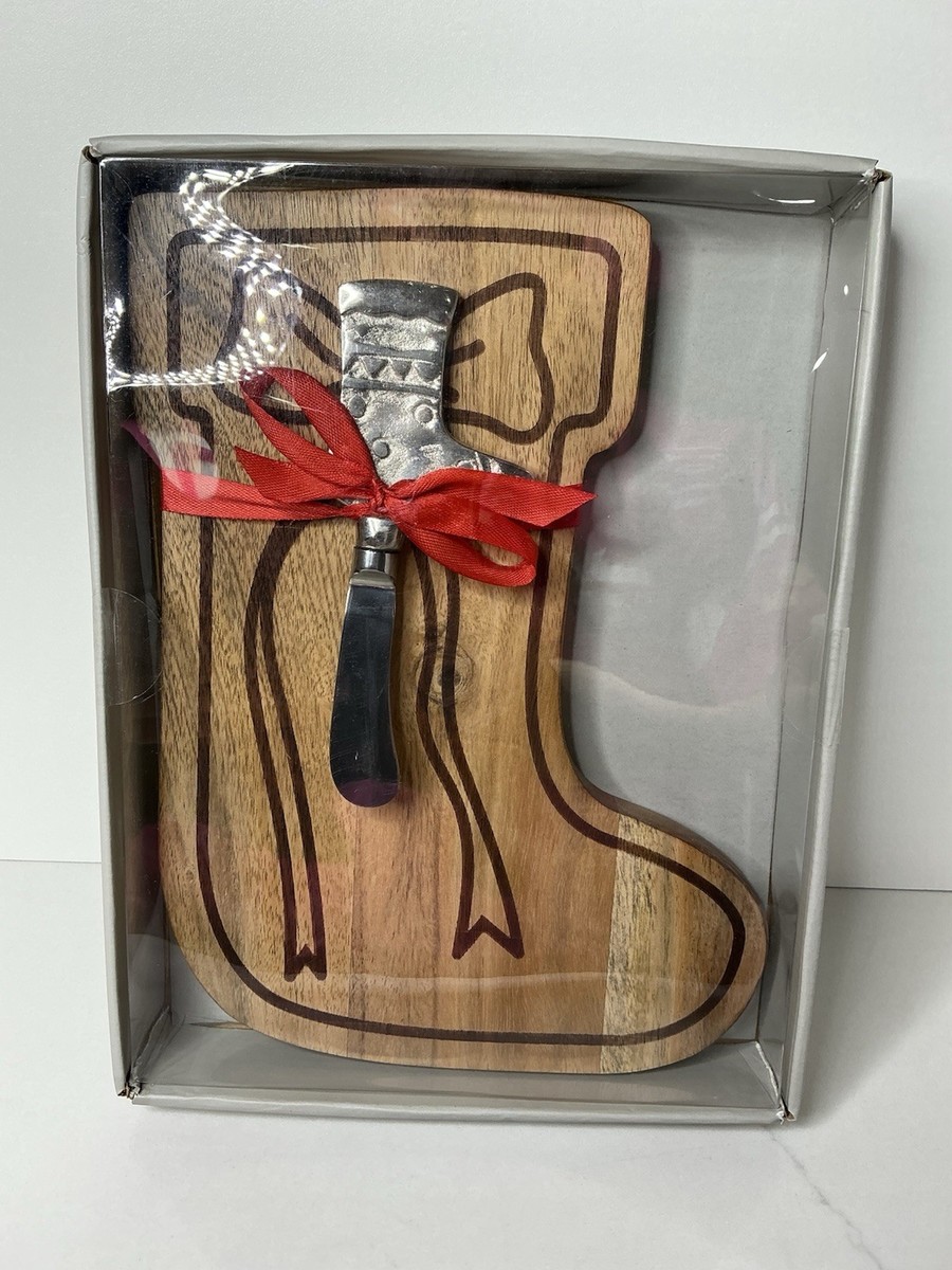 Kirkland's Wooden Serving Cheese Board with Knife Boot Bow New