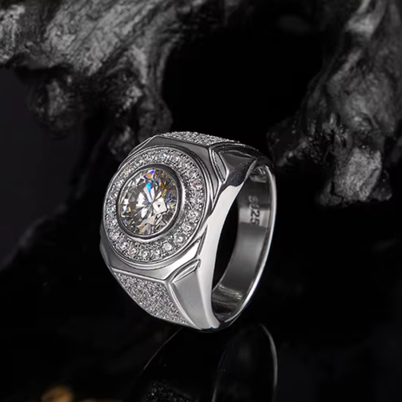 Men's 18K Solid 925 Sterling Sliver 2CT Moissanite Luxury Design Halo Ring (9-12