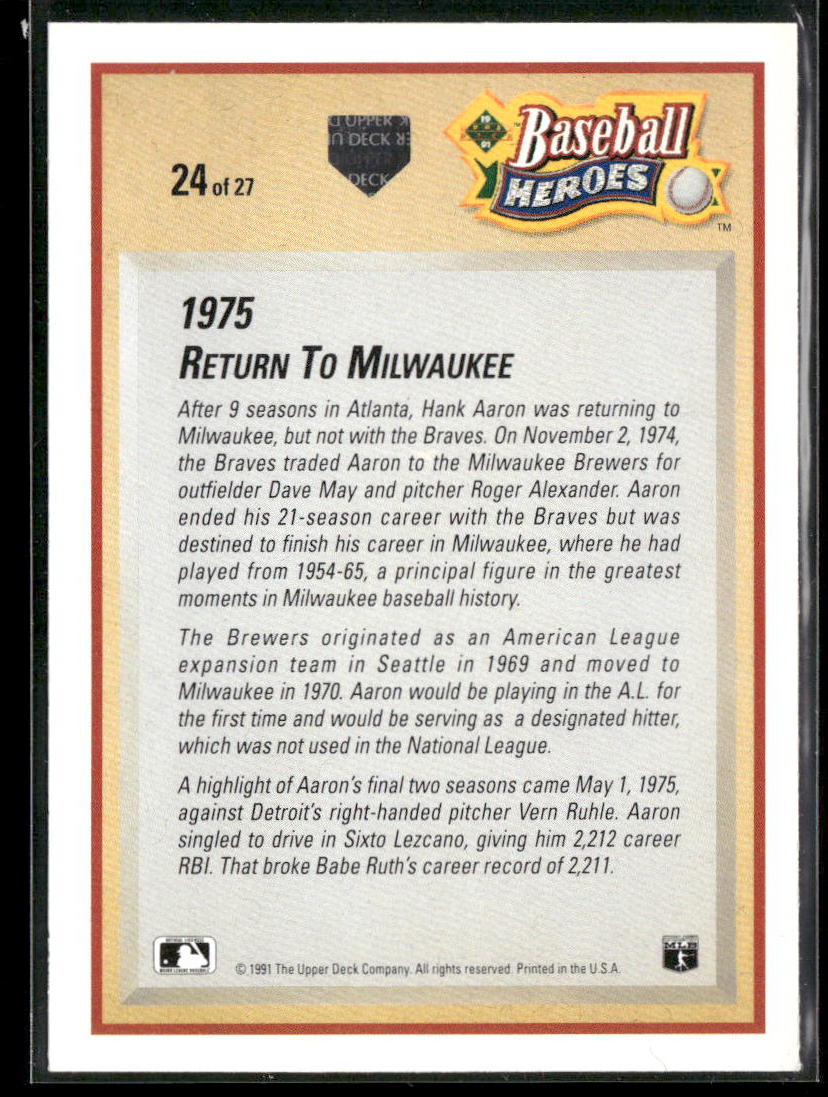 1991 Upper Deck #24 Hank Aaron Baseball Heroes: Hank Aaron
