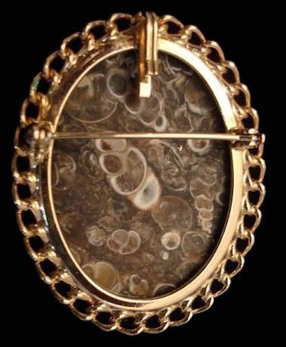 Beautiful vintage 1 1/2? x 1 7/8? Turritella agate brooch with goldtone chain edging and open bail for necklace. The detail in the agate is just amazing!
