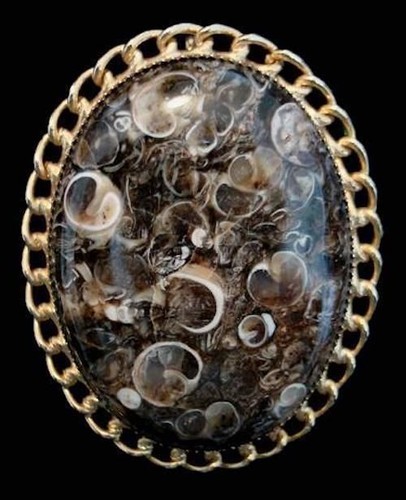 Vintage Turritella Agate Brooch W Bail 1940S