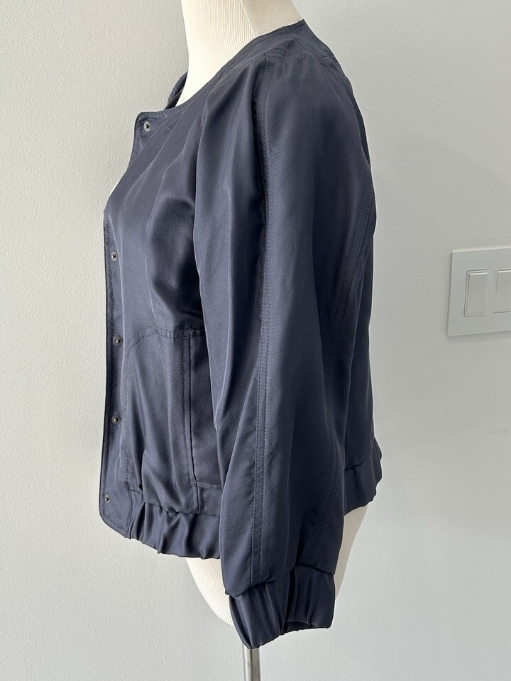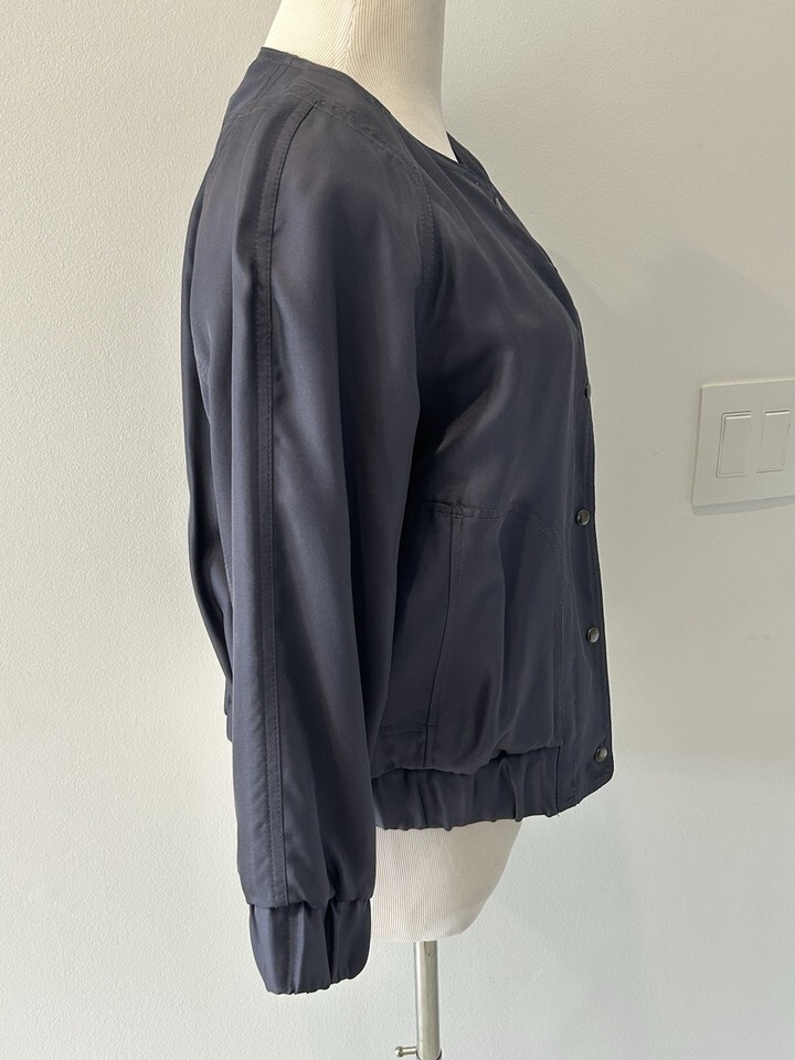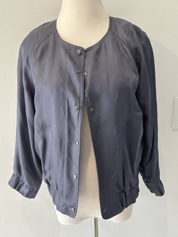 Club Monaco womens medium Blue/gray Silk Button Down Jacket Medium NWOT