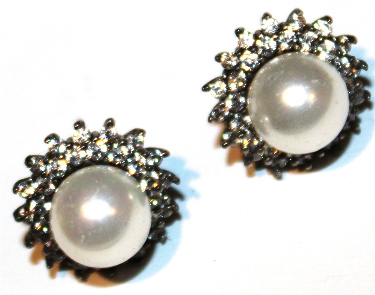 Fantastic flawless 925 sterling silver marked freshwater pearl Earrings Lot#599