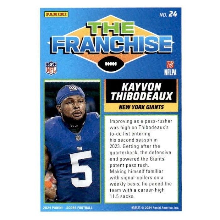 2024 NFL Score Football Kayvon Thibodeaux The Franchise New York Giants Card #24