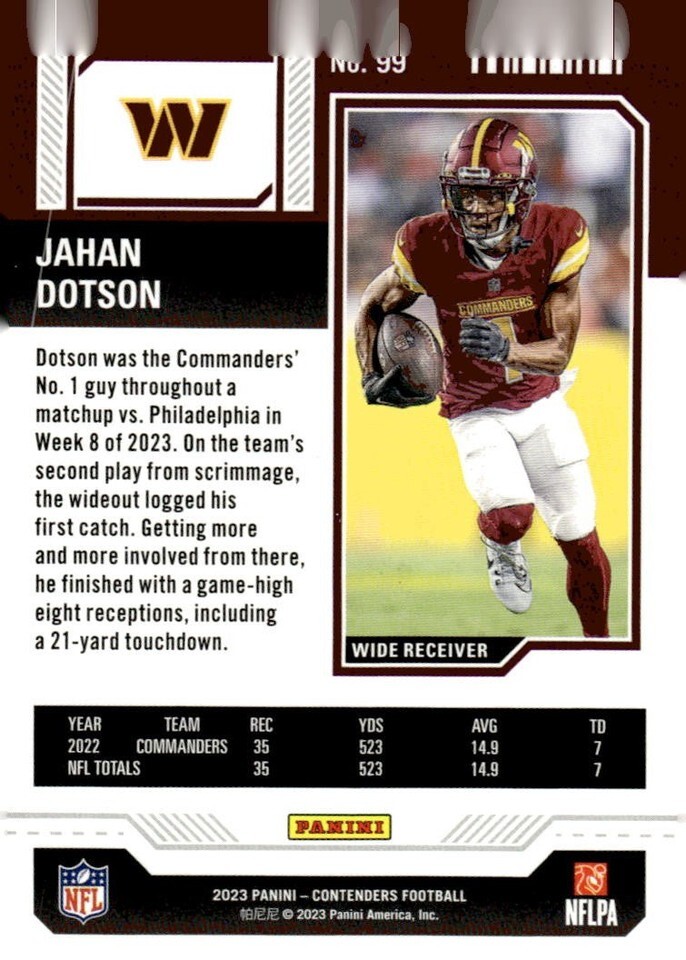 2023 Panini Contenders Football Card #99 Jahan Dotson* NFL Washington Commanders