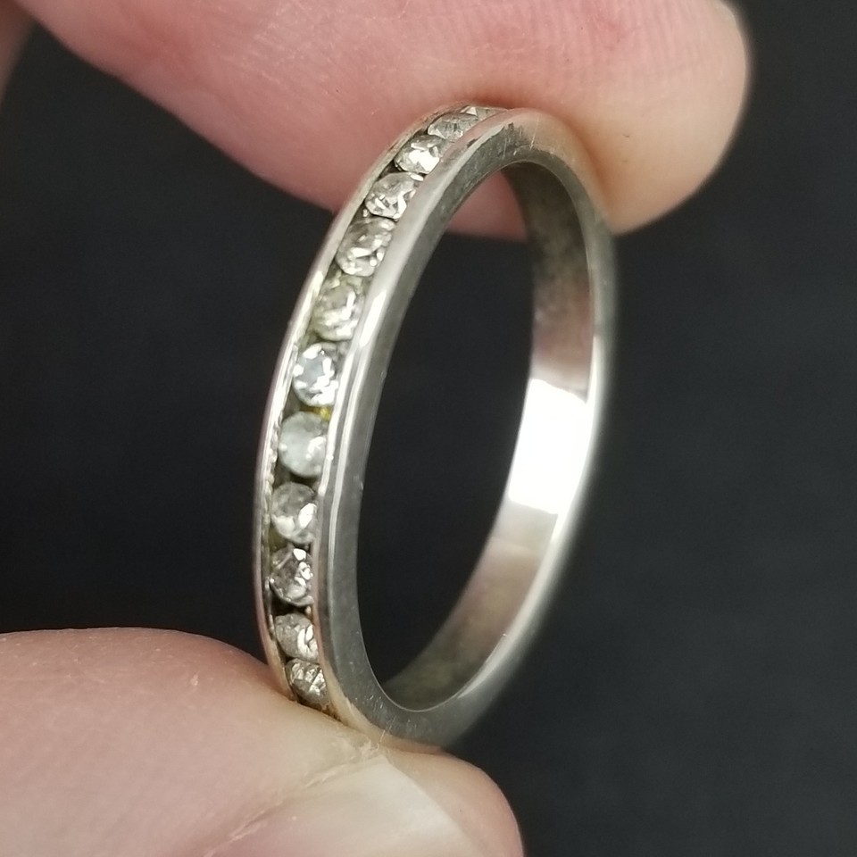 STERLING SILVER ladies ring. Great band design with cubic zirconia ALL AROUND.