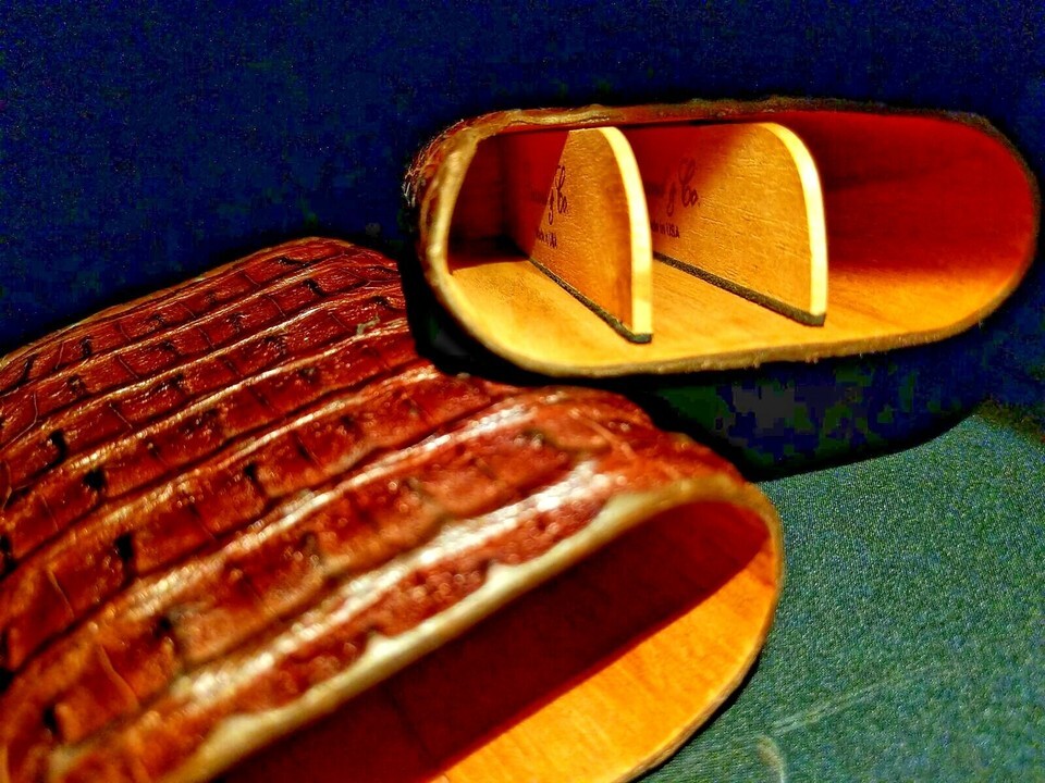 Brizard and Co Brown Caiman Alligator Cigar Case, Cutter and Lighter Combo NIB -Made in the USA