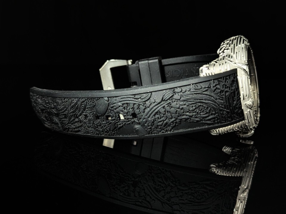 This Invicta S1 Rally Maori Shark watch is a stunning piece that will make any man look stylish. It features a round silicone and rubber case with a matte finish and a fixed silver bezel. The watch has a two-piece black strap with a buckle closure and a left-handed design.