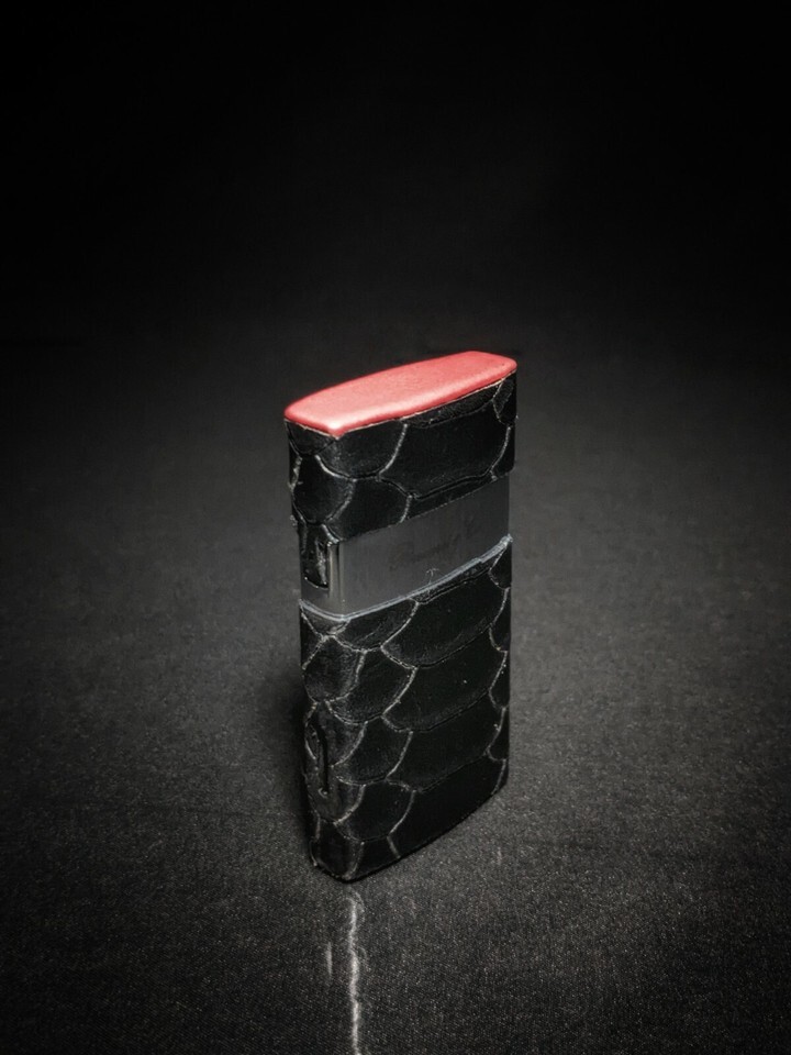This is a new Brizard and Co Black Python Pattern and Red Leather Lighter. Made in USA. Comes in the original box with suede pouch. We ship worldwide fully insured. Signature is required upon delivery.