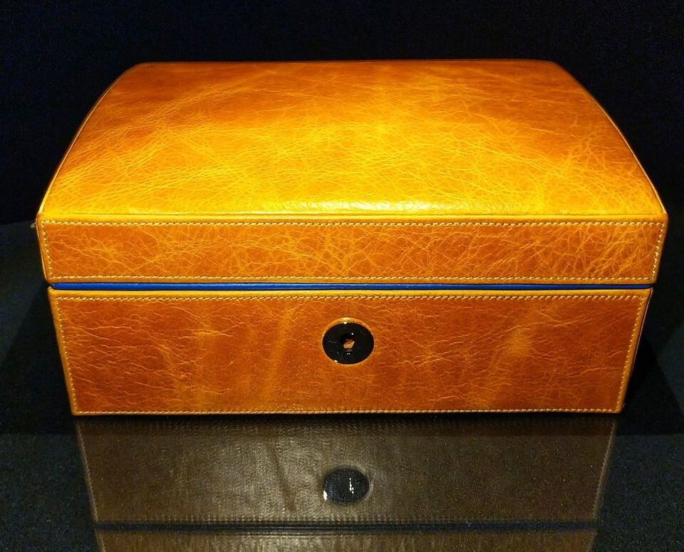 Brizard and Co Camel and Blue Color Leather Humidor 12-20 count NIB in USA