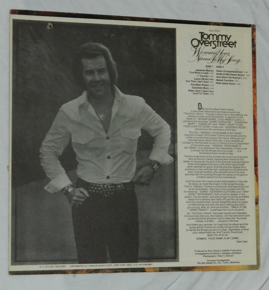 Tommy Overstreet Woman Your Name Is My Song and 46 similar items