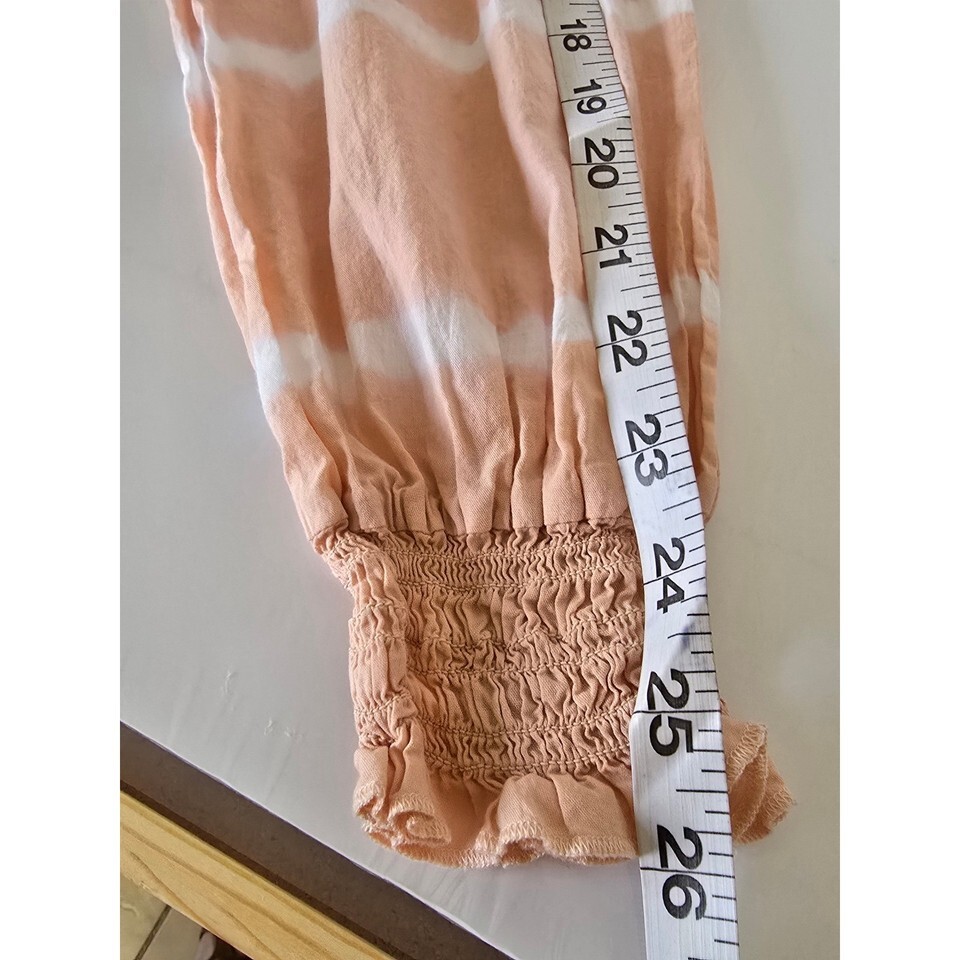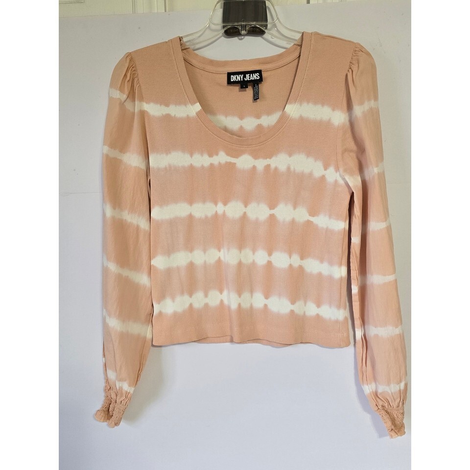 DKNY JEANS Women's Tie Dye Cropped Long Sleeve Top Peach White Size L