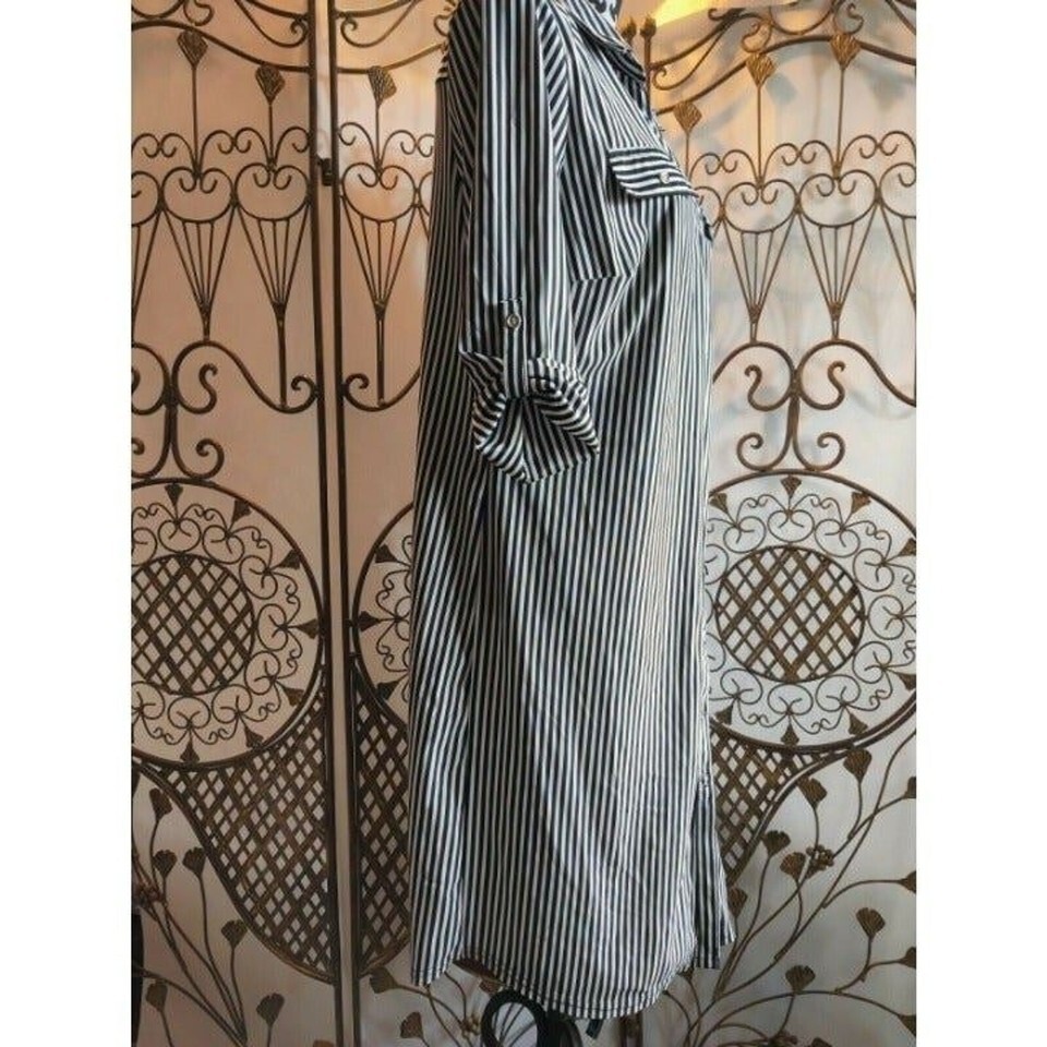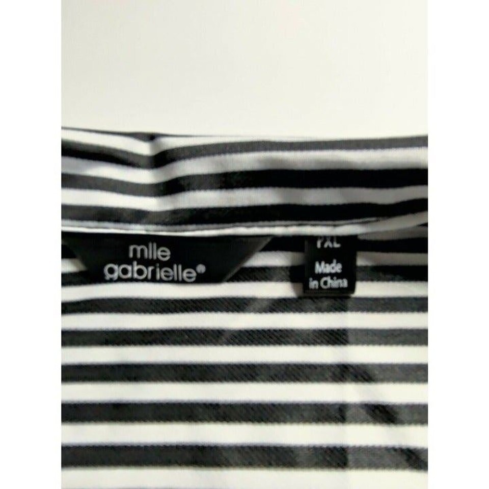 Mlle Gabrielle Women's Button Up Black White Stripe Shirt Dress Size PXL