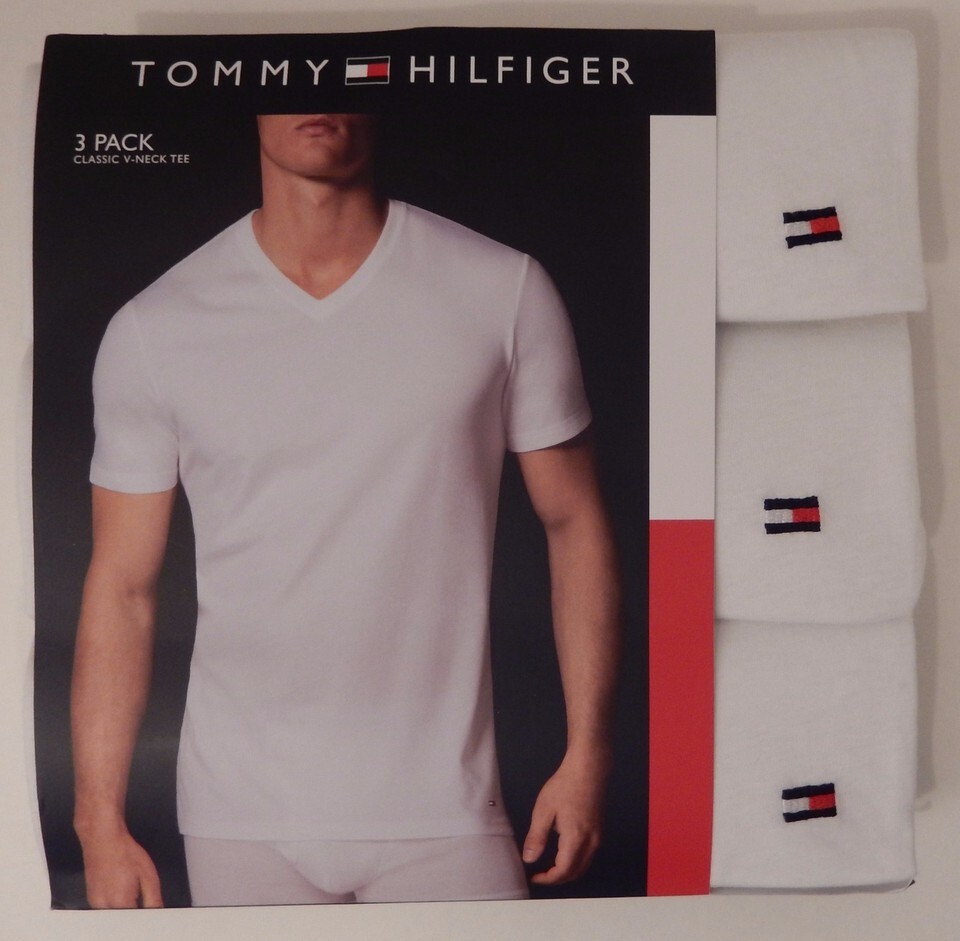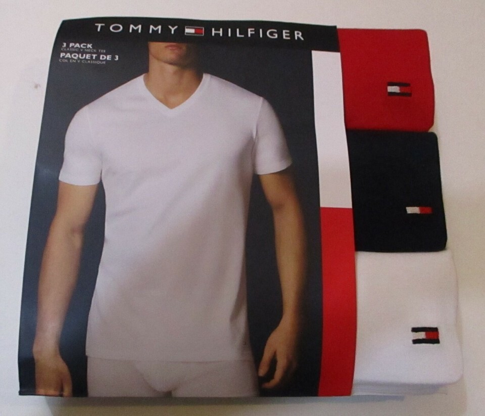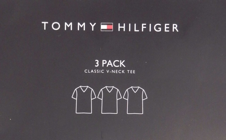 3 TOMMY HILFIGER COTTON BLACK WHITE RED V NECK S M L XL XXL T-SHIRTS UNDERSHIRTS