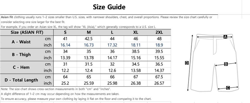 Asian Fit refers to clothing tailored for body shapes commonly found in Asian populations. These items typically run 1-2 sizes smaller than U.S. sizes, with narrower shoulders, chest, and overall proportions. Please check the size chart carefully or consider sizing up for the best fit.