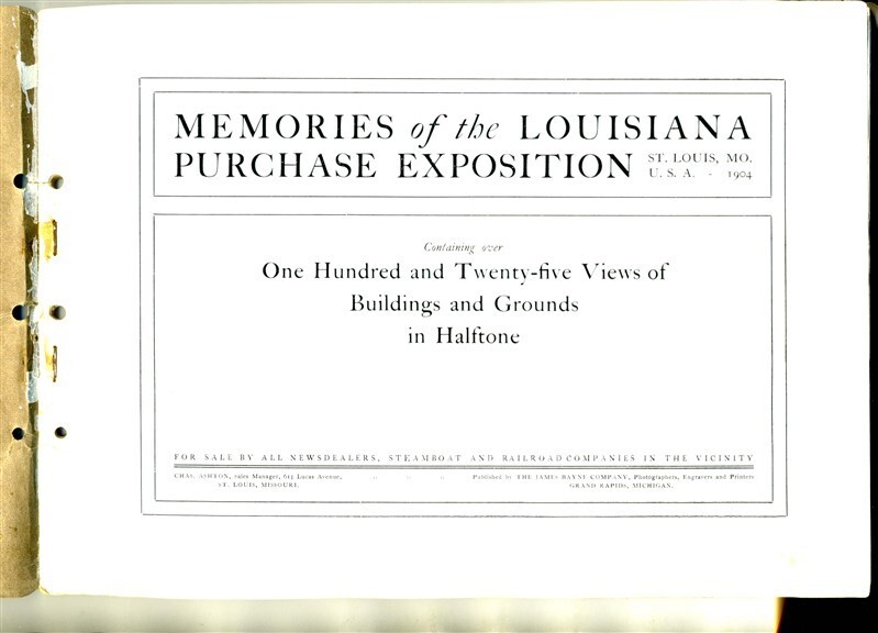 Memories of the Louisiana Purchase Exposition, St Louis Missouri 1904. 125 Views of Buildings and Grounds in Halftone. Published by the James Bayne Company.