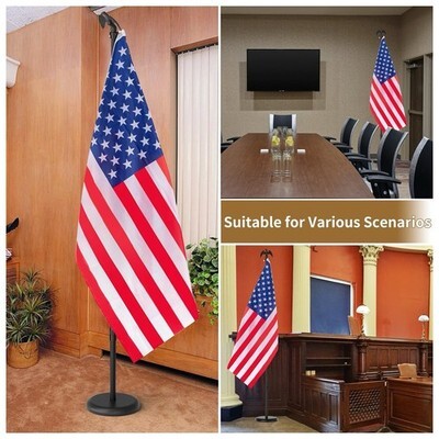 This 8 ft indoor American flag pole and stand set is designed for offices, schools, city halls, churches, and formal indoor displays.