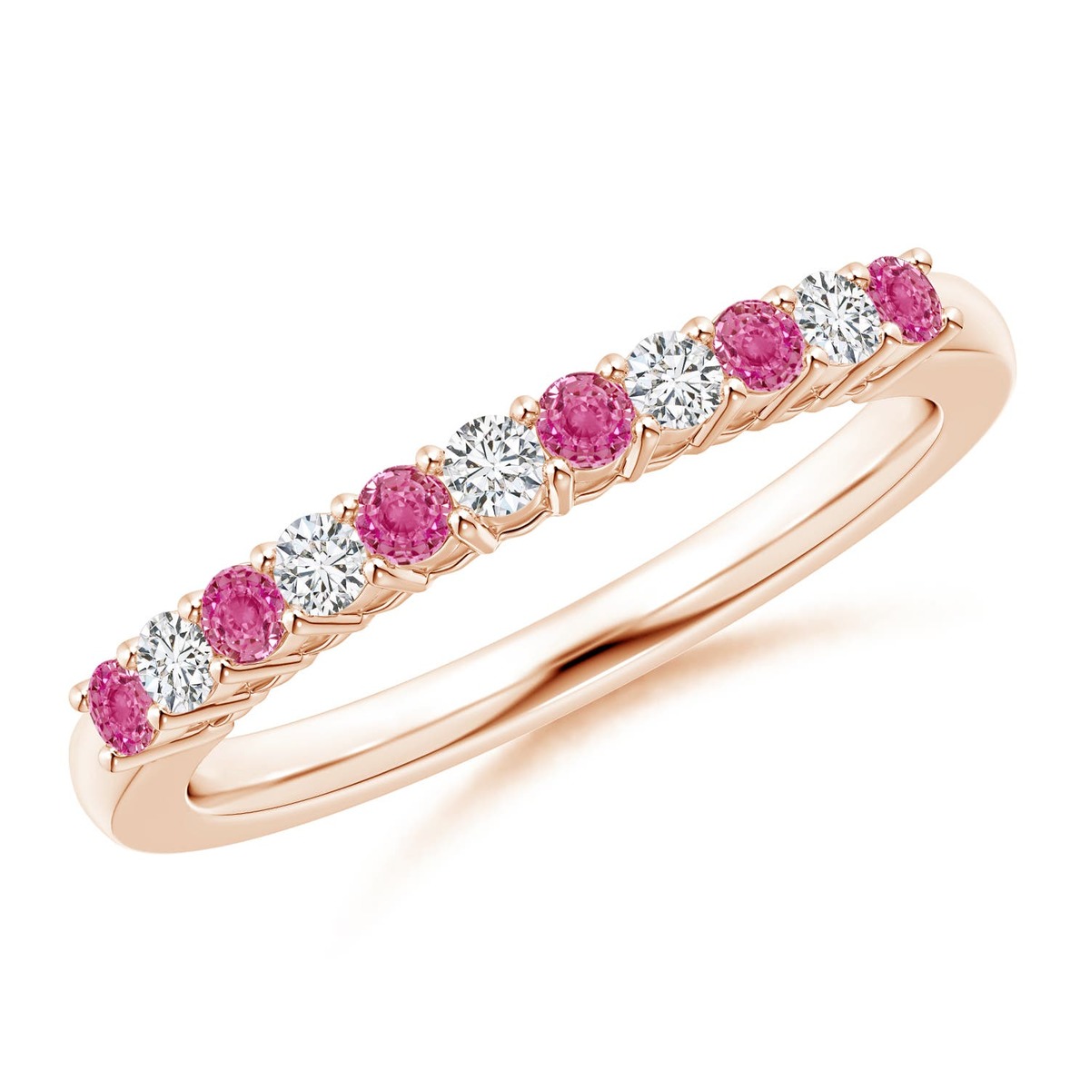 ANGARA 0.42 Ct Pink Sapphire and Diamond Half Eternity Wedding Ring in 14K Gold