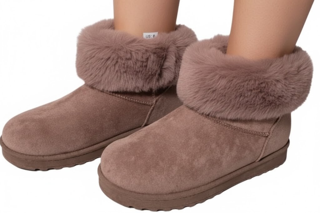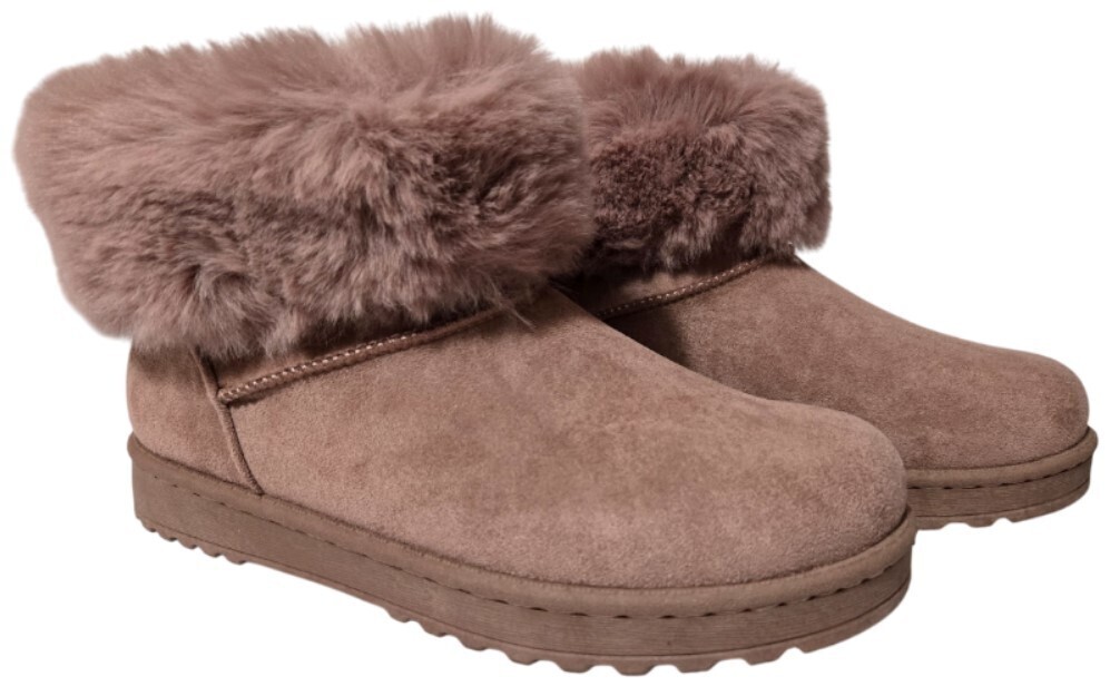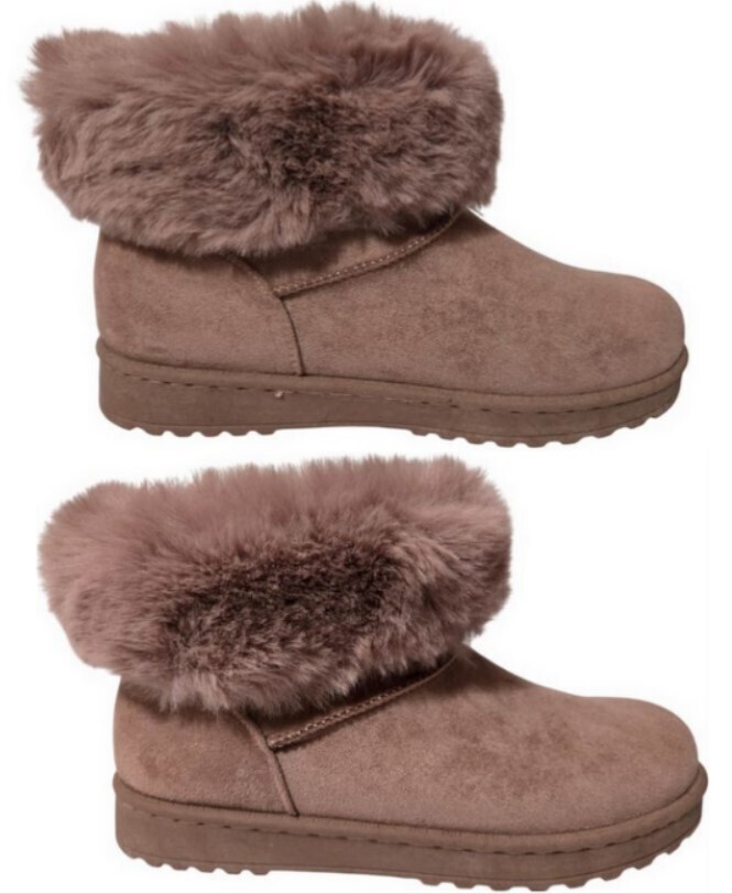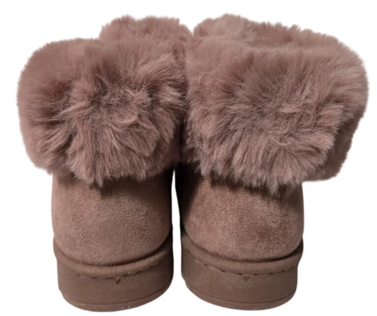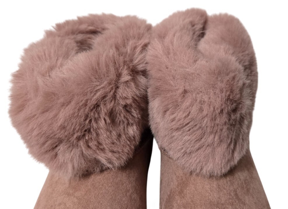 These boots feature a plush mauve faux-fur upper, creating a soft and luxurious look that's both fashionable and functional.