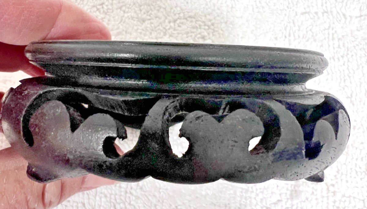 Antique Vintage Chinese 3 Leg Carved Dark Wood Vase Statue Bowl Stand 3 1/4"