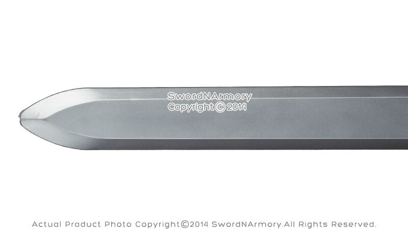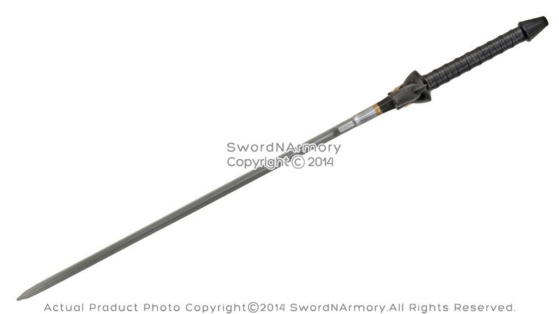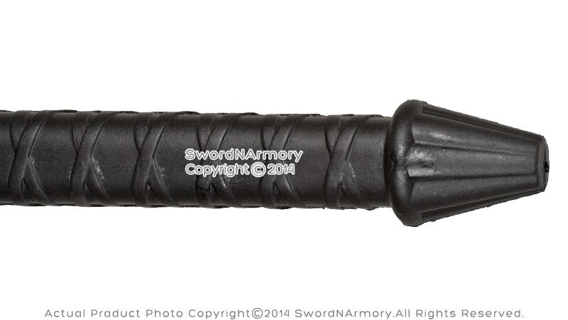 diamond. The handle of the sword is black with a ribbed design. It's good for LARP, cosplay or roleplaying.