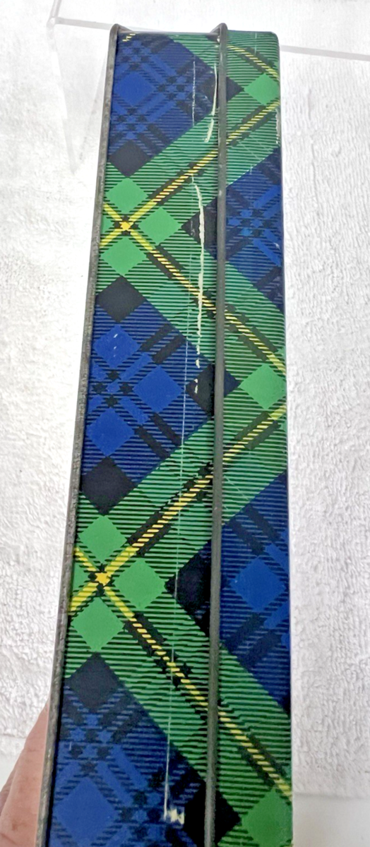 Gordon Clan Duke of Gordon Scottish Cock O? The North Vintage Cracker Biscuit Cookie Octagonal Shape Tin measures approx. 10" long and 5 3/4" wide. Very nice condition cookie biscuit cracker tin with Some wear to plaid border accents and Scottish man's clan attire, inside cleaning, no rusting I find. Has 8 edges. See pictures.