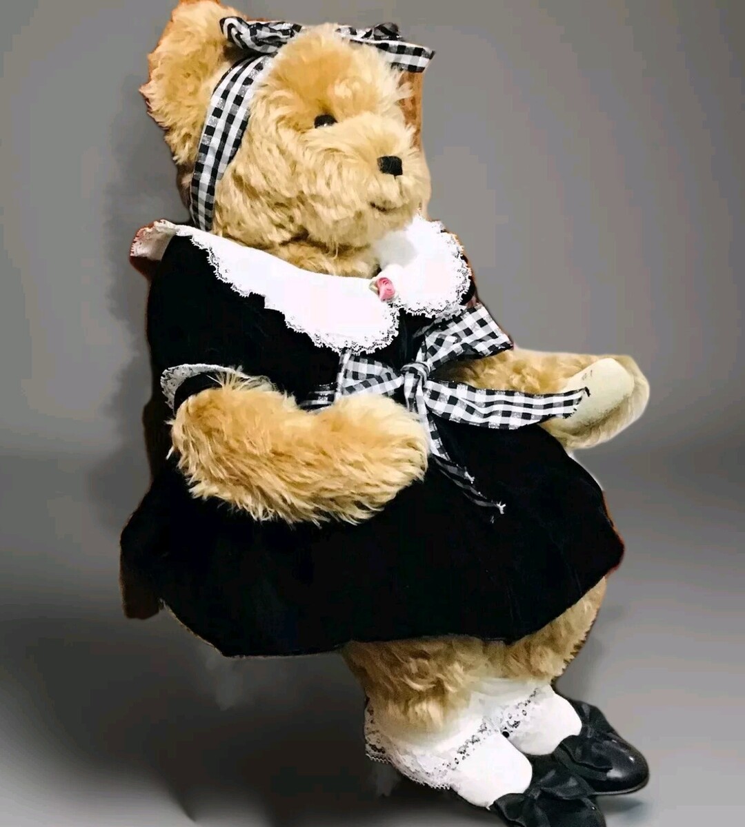 The bear is made of mohair material and is jointed for easy posing and displaying.