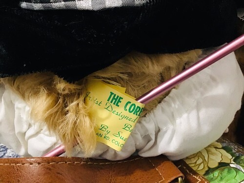 This vintage 22" plush bear is a rare find for any collector or Sue Corbett fan. It is signed by the artist herself and comes with a dress, clothing, shoes, and bow as accessories for the Corbett Kids character.