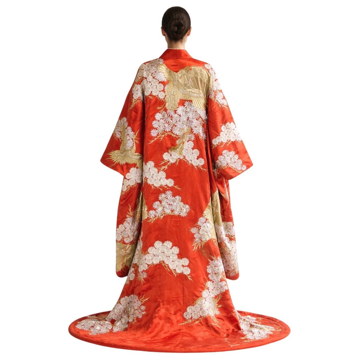 Uchikake garments became increasingly elaborate during the 20th century as wedding attire evolved into a highly symbolic and visually dramatic tradition. This example reflects that lineage and is well suited for study, exhibition, ceremonial display, or high-level costume use.