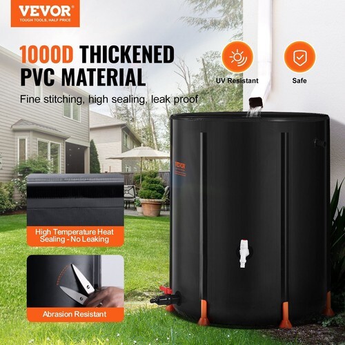 Made from durable 1000D PVC, this portable rain barrel is rainproof, UV-resistant, wear-resistant, and safe. It operates in temperatures ranging from -30? to 70?, making it suitable for both hot summers and cold winters.