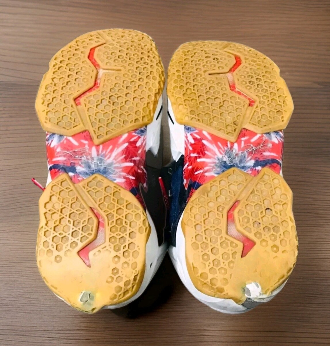 Please see pic #9+ #10 to show wear on both heels of sneakers